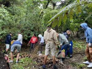 In truly awful weather a hardy group of our teens from St Heliers and Glendowie parishes participated in a community planting day at Glen Atkinson Reserve project.